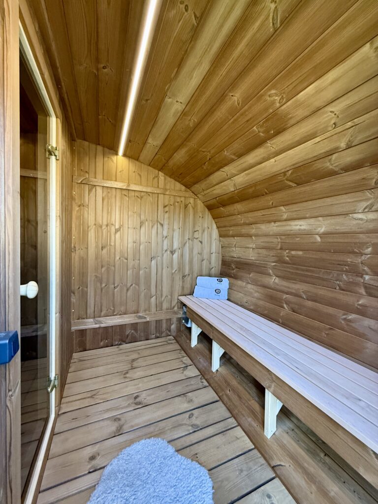 - Éclairage LED sous les bancs de l’espace sauna.